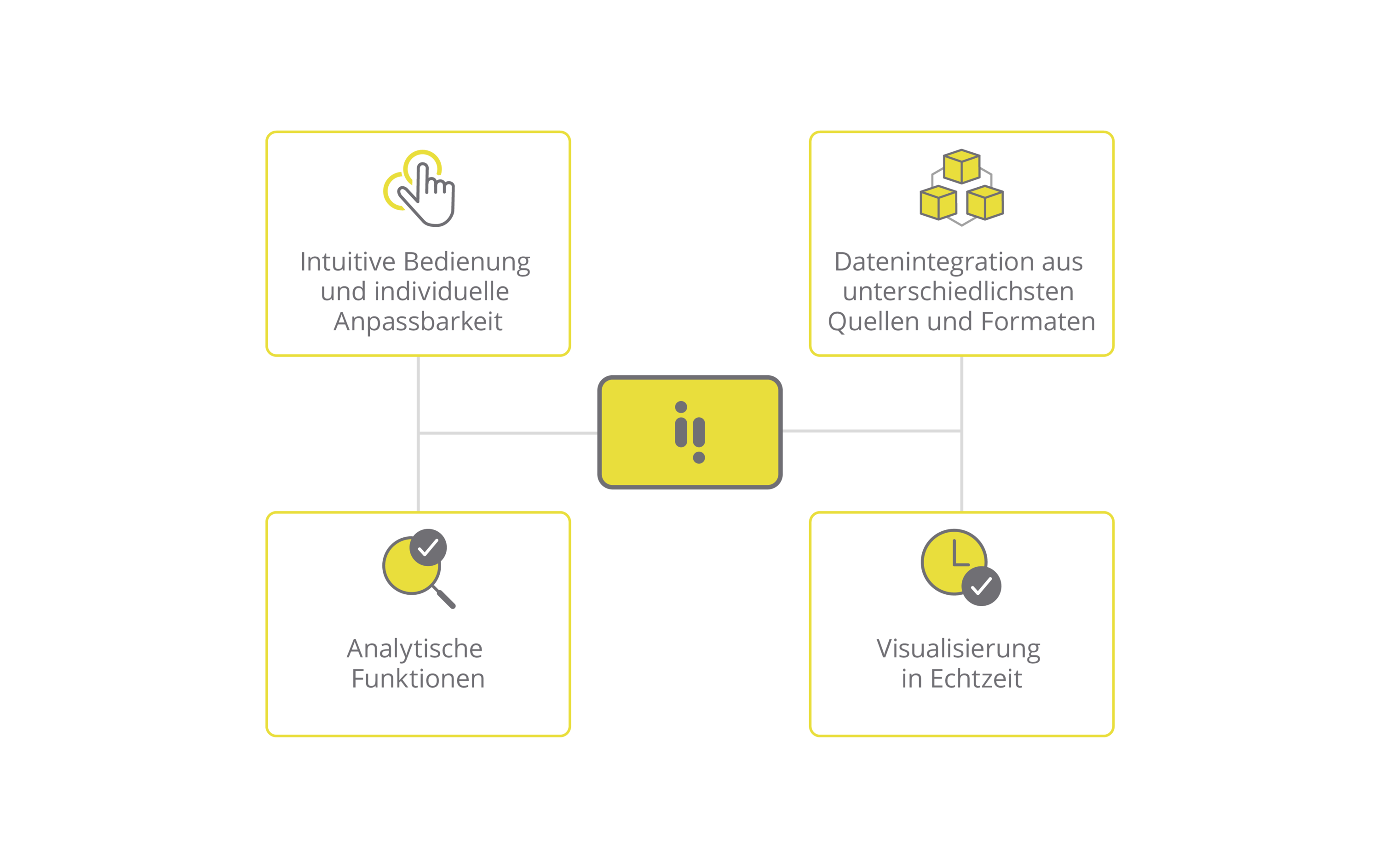 Systeme müssen in der Lage sein, Daten aus unterschiedlichsten Quellen und Formaten zu integrieren und in einer einheitlichen Plattform zugänglich zu machen. Mit der exponentiellen Zunahme von Datenvolumen müssen Visualisierungstools flexibel skalierbar sein, um sowohl kleinen als auch großen Anwendungen gerecht zu werden.