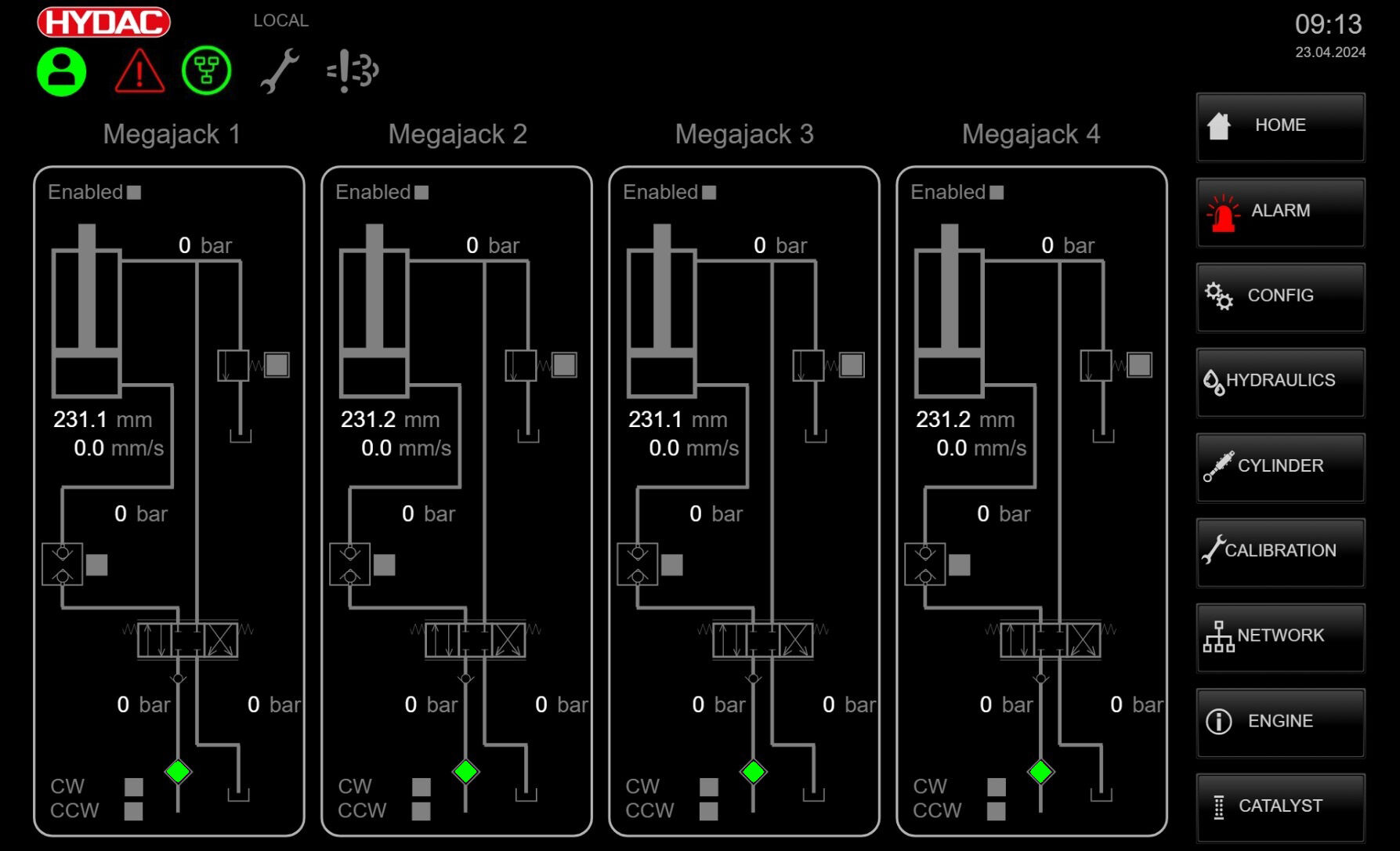 Hycom was assigned to optimize the existing hydraulic control system of the Mammoet lifting system. “The previous system had one major disadvantage: A jack tower consisting of four cylinders was realized by two combined dual-axis controllers, each with its own control system, interfaces and software solution. If several jack towers were required for a project, system complexity increased enormously. It was therefore very difficult for Mammoet to determine exactly where the problem was when something was not working as it should,” explains Roy Beverdam, Hycom General Manager.