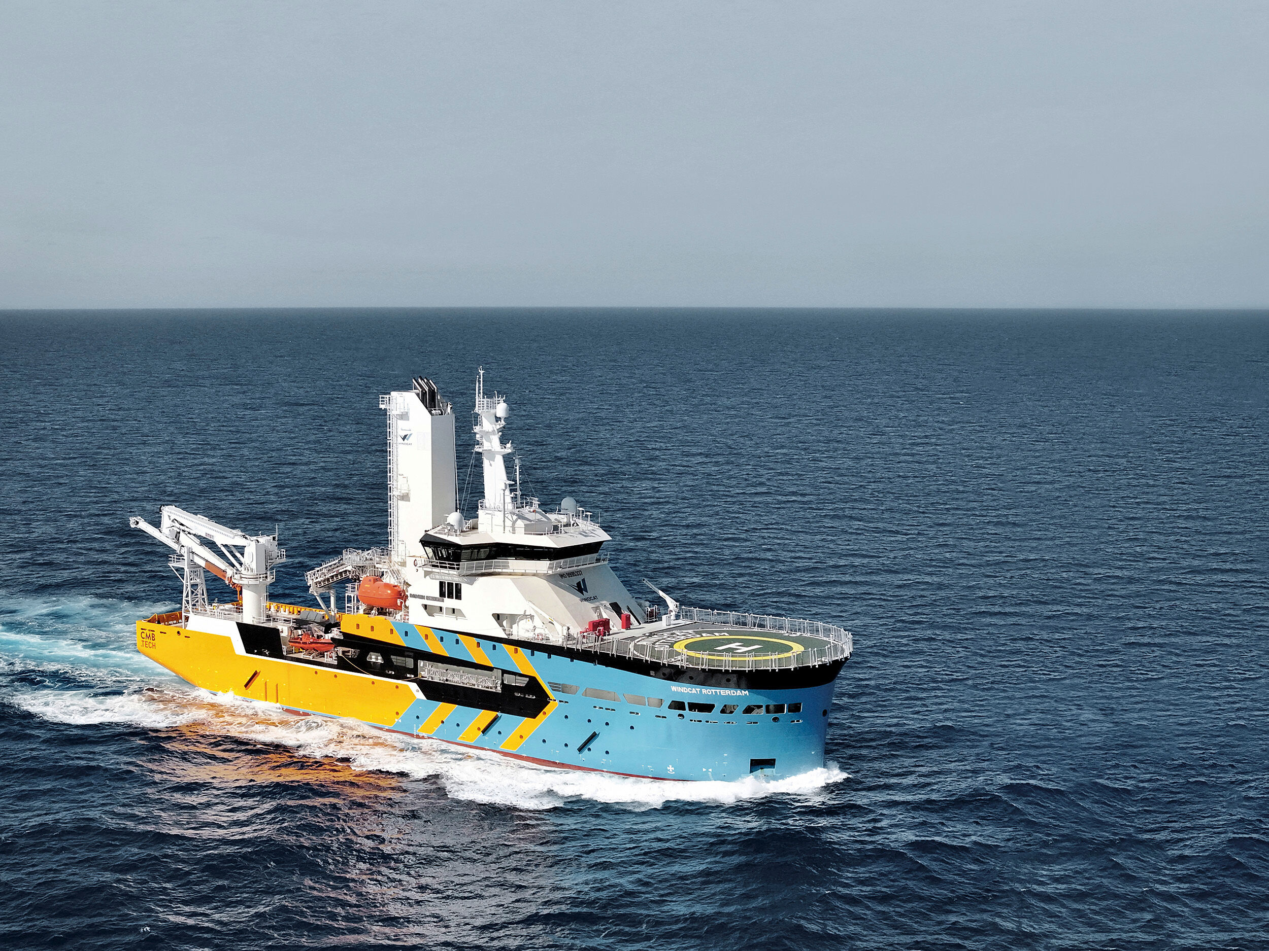 SCHOTTEL has significantly improved the dynamic positioning (DP) capability of its rudder propellers with targeted reinforcement. Thanks to an optimized control structure, the SRP-D propulsion can perform up to five complete 360° rotations per minute – more than twice as many as conventional propulsion units. Faster acceleration and deceleration of the electric motor enable rapid thrust changes in any direction. This increased responsiveness enables a quicker and more precise reaction to external forces, such as wind and current, giving the vessel greater positioning accuracy. „This reduces the footprint of dynamic positioning, while enabling us to work much more precisely, because the motion of the ship has decreased,“ says Glas. Additionally, the propulsion unit’s propeller shaft is at an eight-degree incline. He explains: „This approach minimizes interaction between the propulsion unit and the hull, as well as opposing flow between the propulsion units themselves, significantly optimizing thrust yield and distribution.” In some cases, it also reduces the ship's fuel consumption.